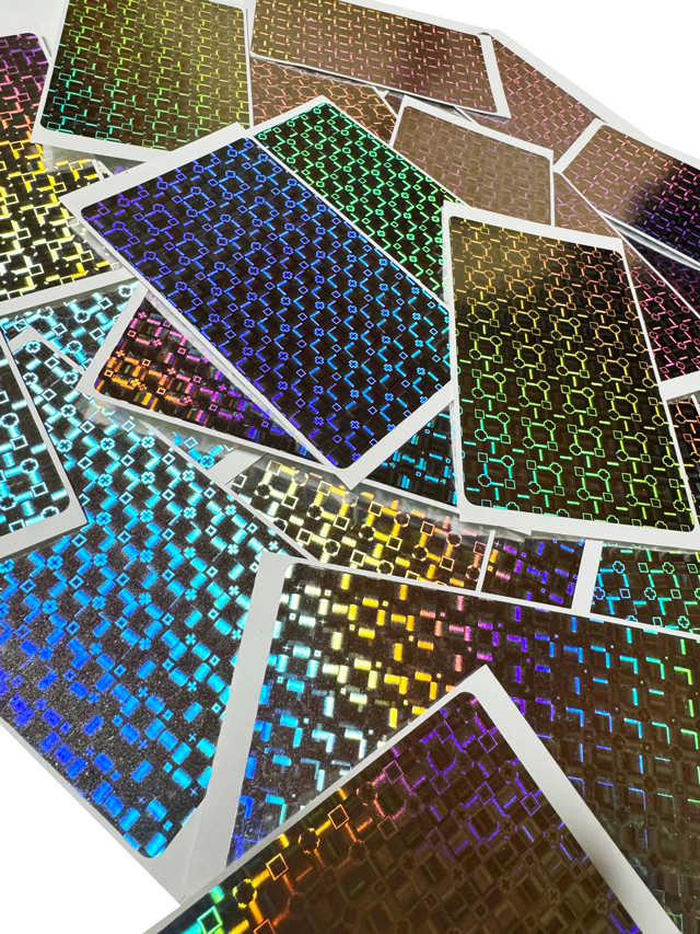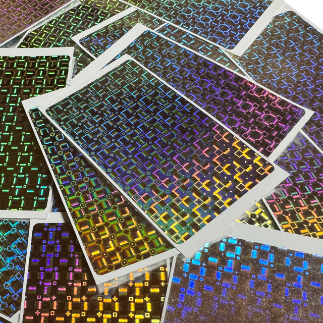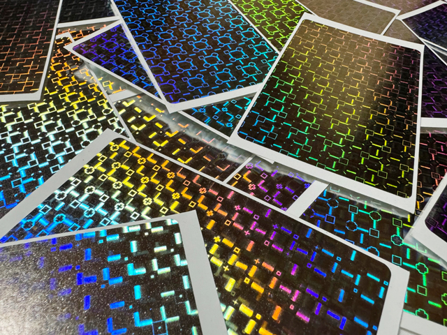 ホログラムになっており、光のあたる角度によって色が変わります。