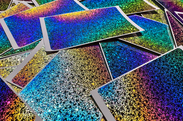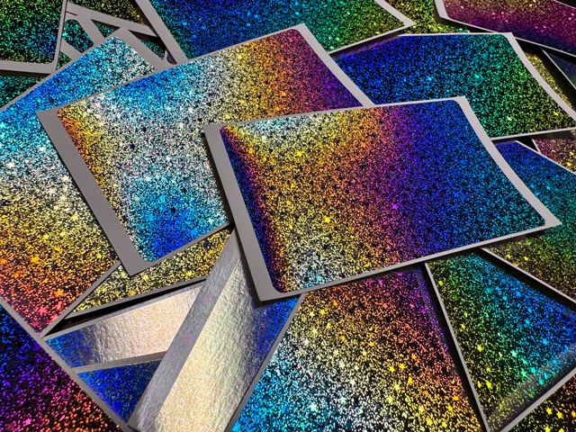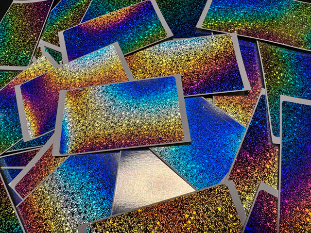 ホログラムになっており、光のあたる角度によって色が変わります。