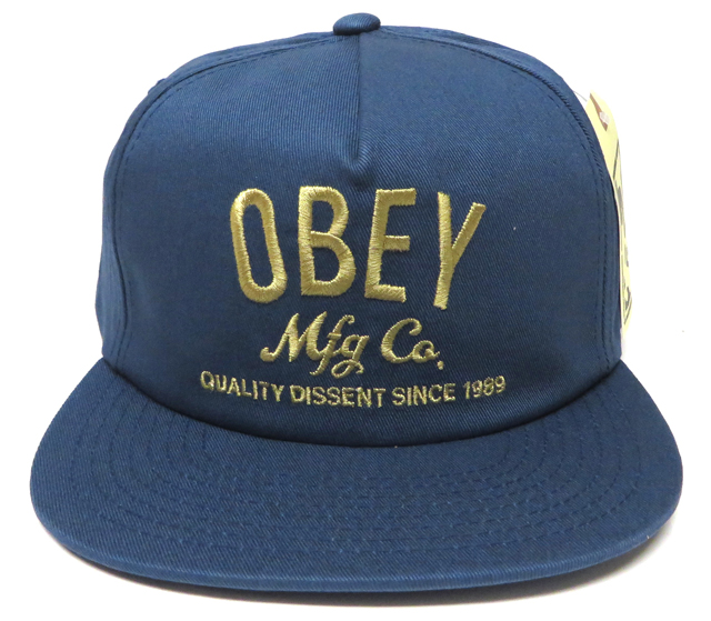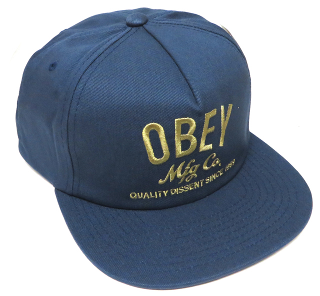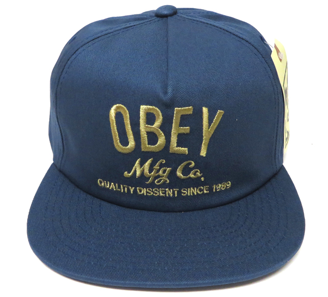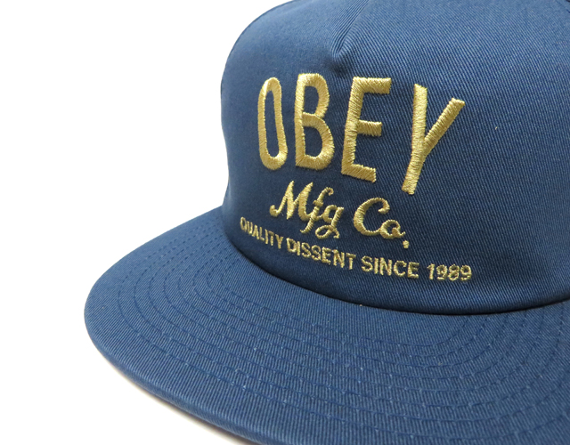 プロレスラーのアンドレ・ザ・ジャイアント顔をモチーフにしたポスターやステッカーを世界中にばらまき、そのゲリラ的な手と【OBEY(従え!)】というプロパガンダ的メッセージでく知られているアーティスト、シェパード・フェアリーによるアート・プロジェクト OBEY COMPANY スナップバック CAP インディゴ です。 カラー:インディゴ