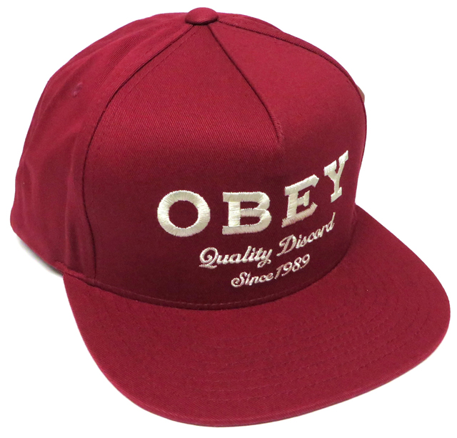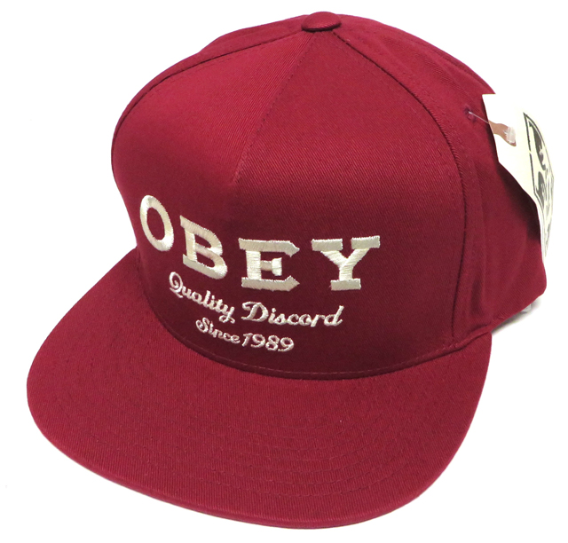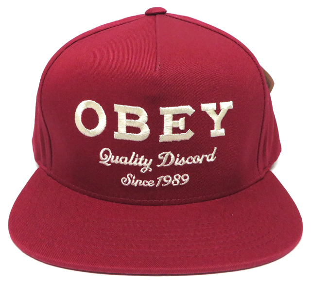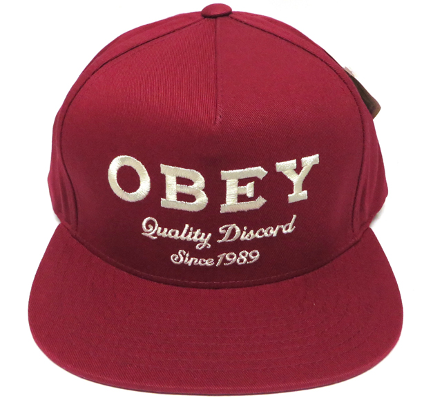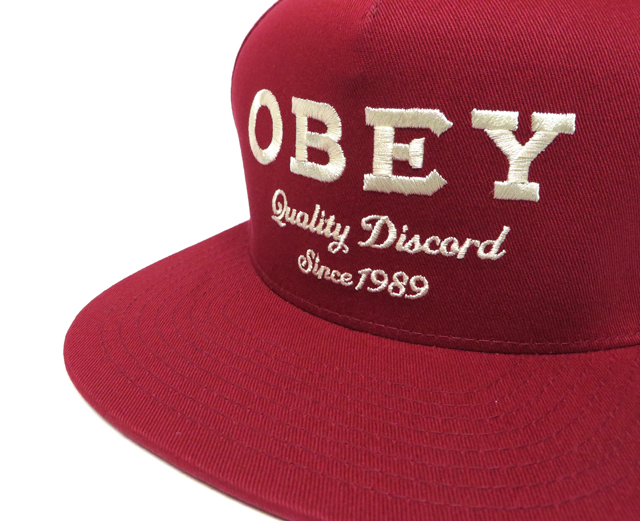 プロレスラーのアンドレ・ザ・ジャイアント顔をモチーフにしたポスターやステッカーを世界中にばらまき、そのゲリラ的な手と【OBEY(従え!)】というプロパガンダ的メッセージでく知られているアーティスト、シェパード・フェアリーによるアート・プロジェクト OBEY DISCORD スナップバック CAP カーディナル です。 カラー:カーディナル