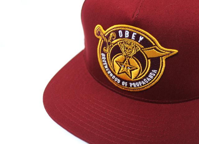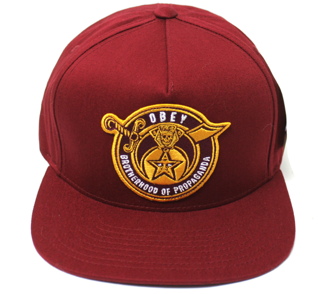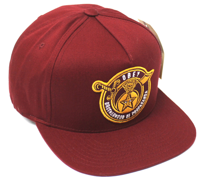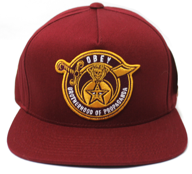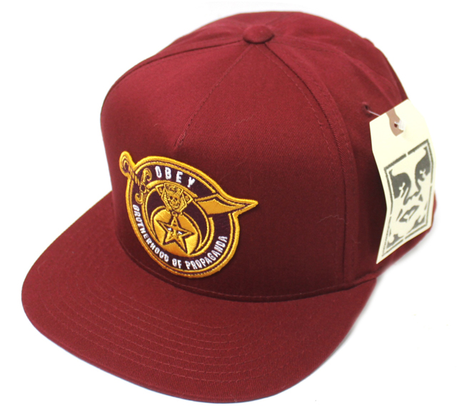 プロレスラーのアンドレ・ザ・ジャイアント顔をモチーフにしたポスターやステッカーを世界中にばらまき、そのゲリラ的な手と【OBEY(従え!)】というプロパガンダ的メッセージでく知られているアーティスト、シェパード・フェアリーによるアート・プロジェクト OBEY BROTHERHOOD スナップバック CAP バーガンディ です。 カラー:バーガンディ