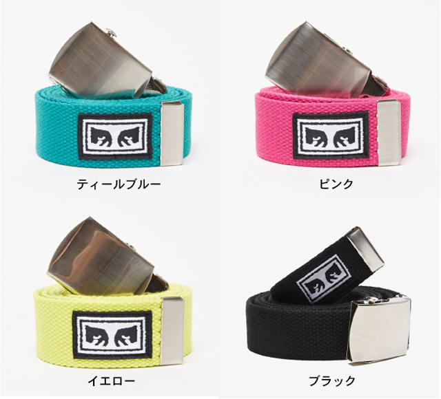 プロレスラーのアンドレ・ザ・ジャイアント顔をモチーフにしたポスターやステッカーを世界中にばらまき、そのゲリラ的な手と【OBEY(従え!)】というプロパガンダ的メッセージでく知られているアーティスト、OBEY BIG BOY ベルト 4色展開 です。 カラー: ティールブルー ピンク イエロー ブラック