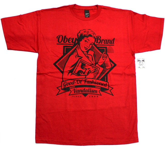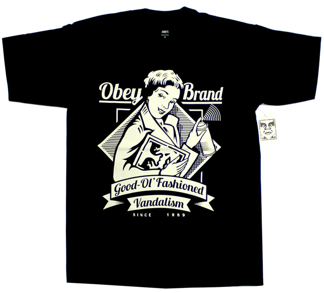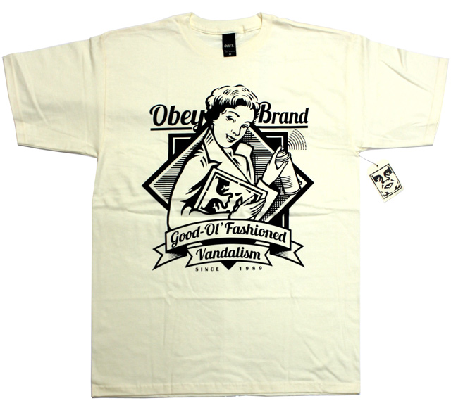 プロレスラーのアンドレ・ザ・ジャイアント顔をモチーフにしたポスターやステッカーを世界中にばらまき、そのゲリラ的な手と【OBEY(従え!)】というプロパガンダ的メッセージでく知られているアーティスト、OBEY Vandalism Teeシャツ 3色展開 です。