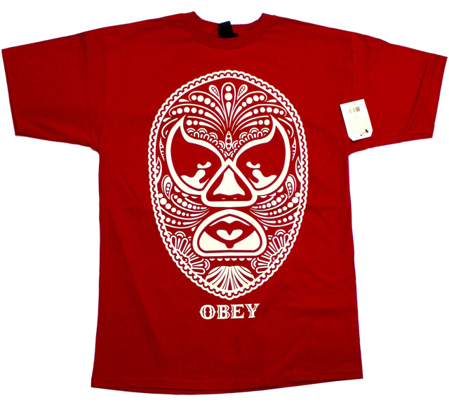 プロレスラーのアンドレ・ザ・ジャイアント顔をモチーフにしたポスターやステッカーを世界中にばらまき、そのゲリラ的な手と【OBEY(従え!)】というプロパガンダ的メッセージでく知られているアーティスト、OBEY Luchador Teeシャツ 2色展開 です。 カラー: レッド ブラック サイズ: Sサイズ/着丈:68 身幅:45 Mサイズ/着丈:72 身幅:50 Lサイズ/着丈:77 身幅:55 XLサイズ/着丈:80 身幅:60