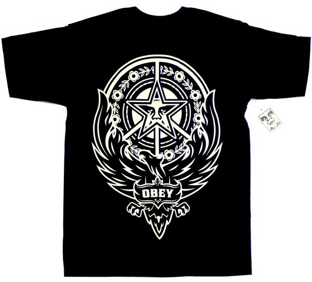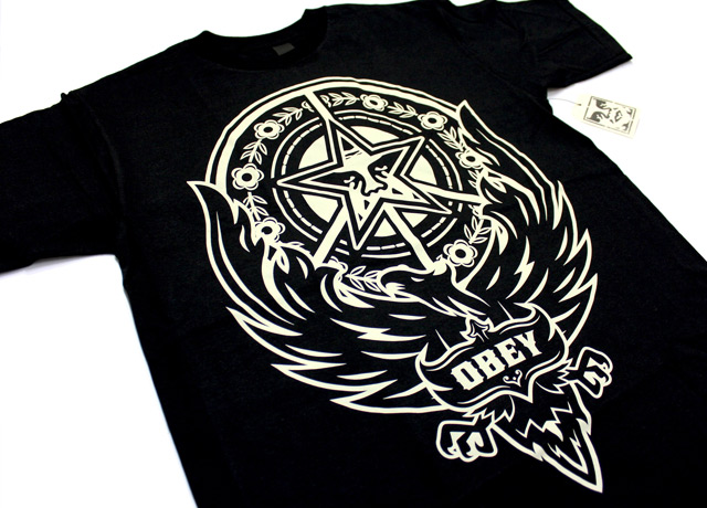 プロレスラーのアンドレ・ザ・ジャイアント顔をモチーフにしたポスターやステッカーを世界中にばらまき、そのゲリラ的な手と【OBEY(従え!)】というプロパガンダ的メッセージでく知られているアーティスト、OBEY Peace phonix Teeシャツ です。 カラー: ブラック サイズ: Sサイズ/着丈:68 身幅:45 Mサイズ/着丈:72 身幅:50 Lサイズ/着丈:77 身幅:55 XLサイズ/着丈:80 身幅:60