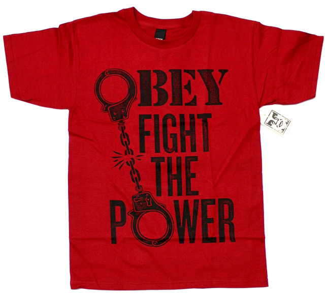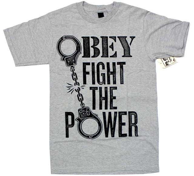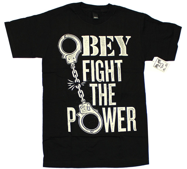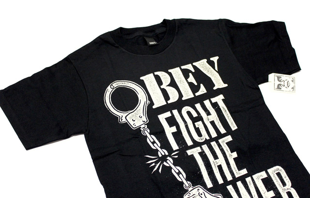 プロレスラーのアンドレ・ザ・ジャイアント顔をモチーフにしたポスターやステッカーを世界中にばらまき、そのゲリラ的な手と【OBEY(従え!)】というプロパガンダ的メッセージでく知られているアーティスト、OBEY Fight the power Tシャツ 3色展開 です。