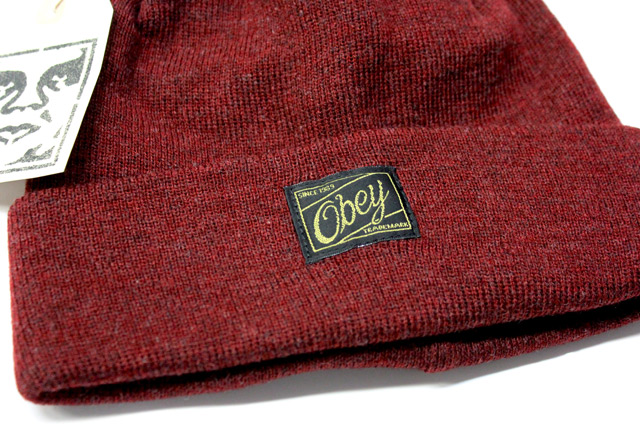 プロレスラーのアンドレ・ザ・ジャイアント顔をモチーフにしたポスターやステッカーを世界中にばらまき、そのゲリラ的な手と【OBEY(従え!)】というプロパガンダ的メッセージでく知られているアーティスト。JOBBER ビーニーです。 カラー:ヘザーバーガンディ