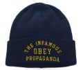 プロレスラーのアンドレ・ザ・ジャイアント顔をモチーフにしたポスターやステッカーを世界中にばらまき、そのゲリラ的な手と【OBEY(従え!)】というプロパガンダ的メッセージでく知られているアーティスト。INFAMOUS ビーニー です。 ネイビー カラー:ネイビー