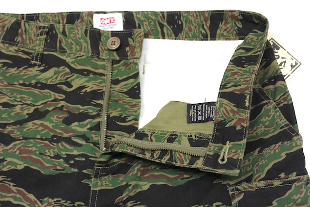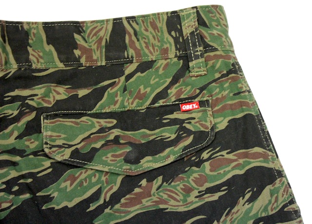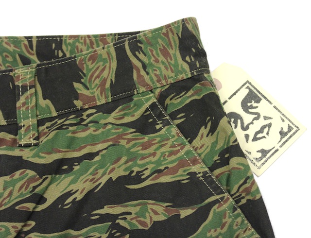プロレスラーのアンドレ・ザ・ジャイアント顔をモチーフにしたポスターやステッカーを世界中にばらまき、そのゲリラ的な手と【OBEY(従え!)】というプロパガンダ的メッセージでく知られているアーティスト、OBEY チノショートパンツです。 カラー:タイガーカモ サイズ: W32/ウエスト86cm×丈45cm×ワタリ30cm×裾幅27cm W34/ウエスト92cm×丈48cm×ワタリ32cm×裾幅28cm
