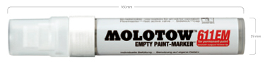 ペン先部分が1.5cm. molotow社製のマーカーです。さまざまなインクに対応、自分好みのカラーのインクなど入れてみるにはgoodです。注(インクは入っていません)