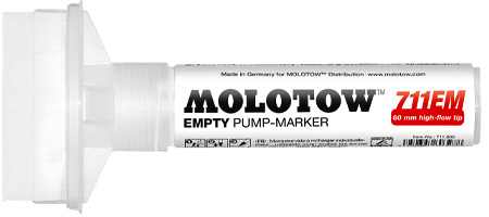 ペン先部分が6cmの超ワイドな 空マーカーです。 molotow社製。さまざまなインクに対応、自分好みのカラーのインクなど入れてみるにはgoodです。 注(インクは入っていません) ニブサイズ:60mm x 10mm(ドイツ製)